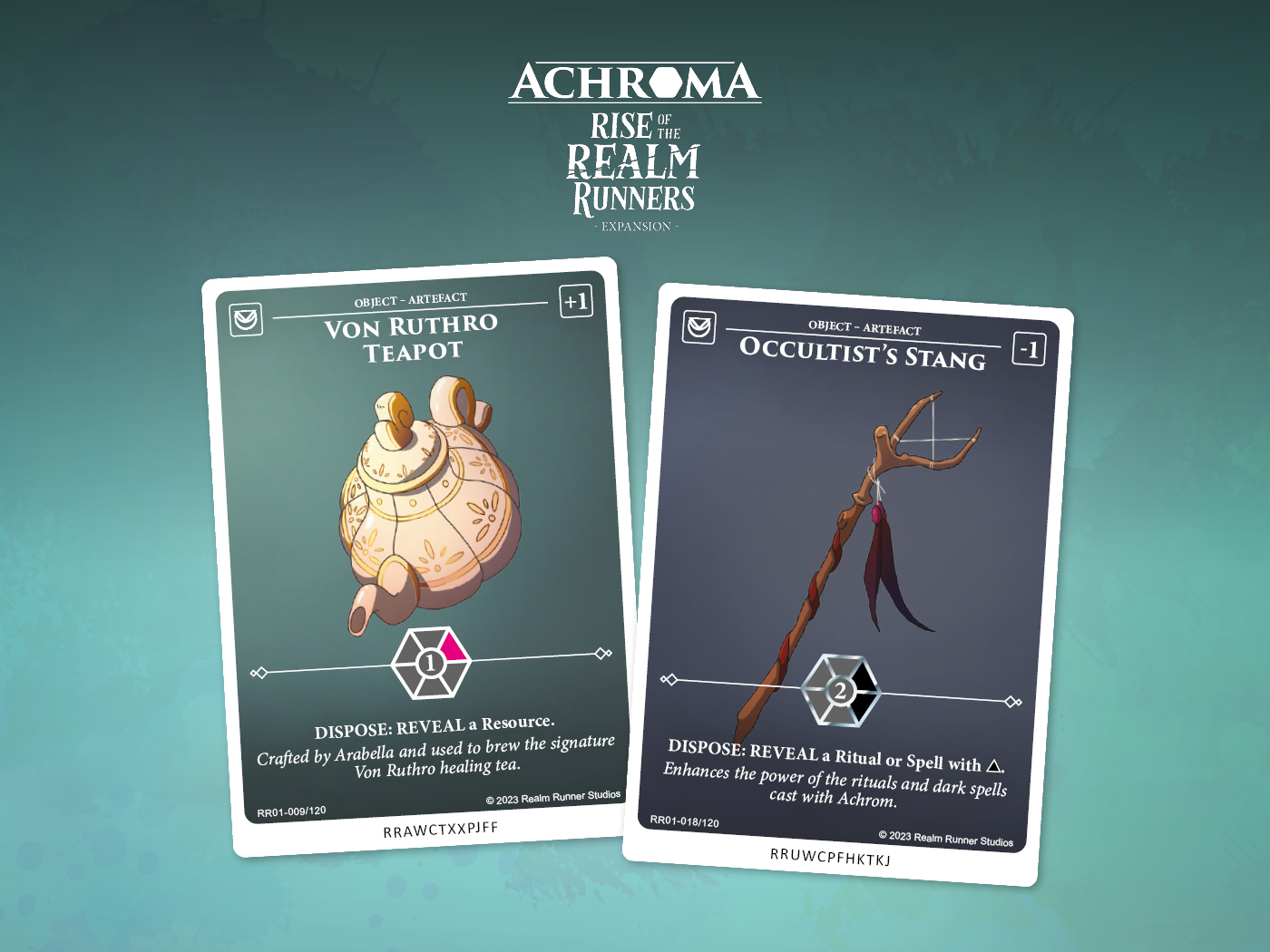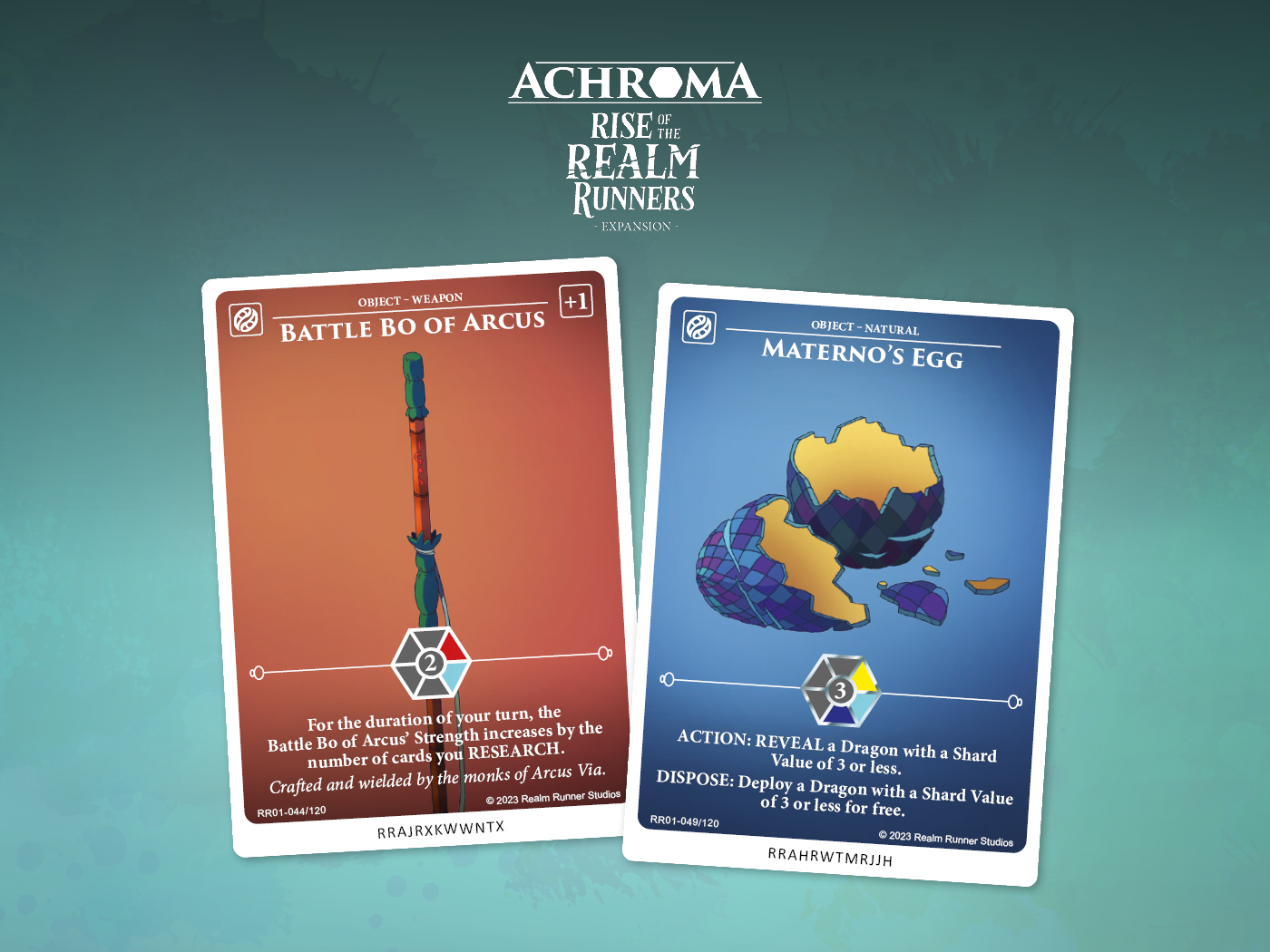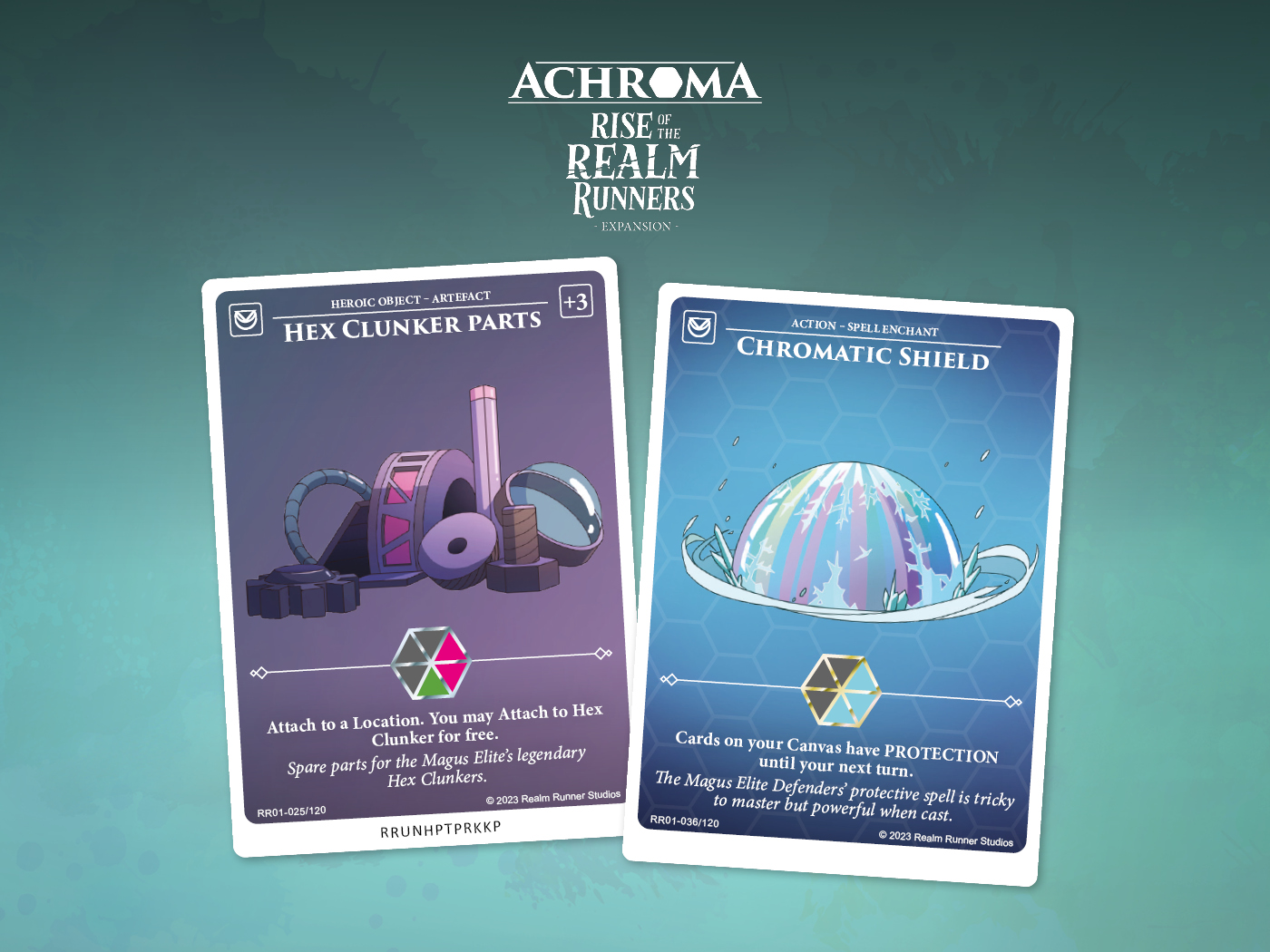 The winner with these cards is probably achrom. Of the 4 realm rifts and 4 realm runes, achrom get one of each, while the rifts belong to dark blue, green, and pink, and the runes belong to red, yellow, and pale blue. Sure, chroma decks play a mix of colours. But it’s just much easier to stick to one colour when you’re talking about achrom. That being said, a clever build could really utilise the rifts to pull specific cards from their deck, by only including a handful of powerful cards with the target Δ colour, a trick that achrom can’t use because all their cards have an achrom Δ. More on this later.