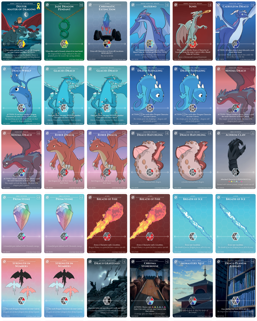 Chromatic Extinction is in there because the biggest threat to this palette is lack of board presence. Because of how weak all of the dragons are, if your opponent gets out a few strong characters BEFORE you can, you are screwed as you cannot build up your canvas. When this happens… your only gain is from one of 3 locations…. So Chromatic Extinction is your lifeline to clear characters so that you can then play 2 other Characters after on that turn and re-gain board control.