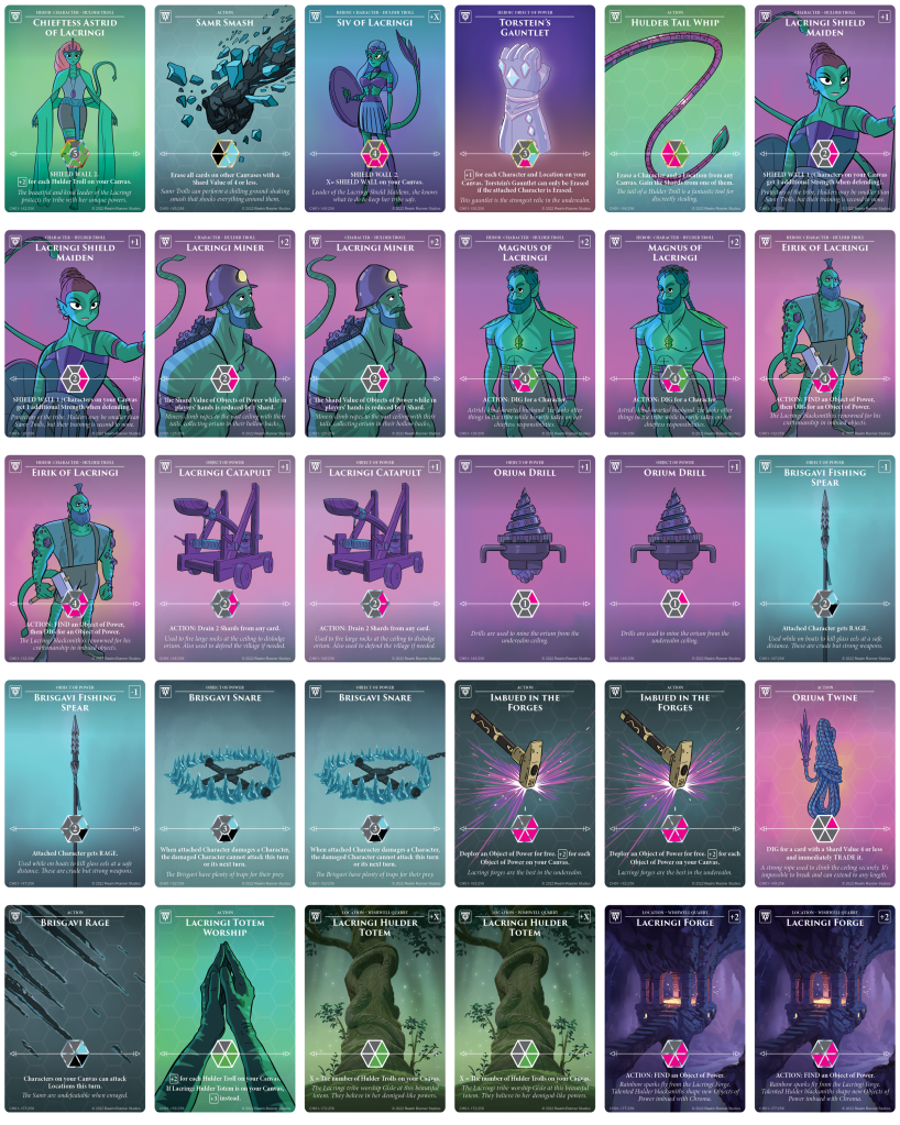 The general idea of the palette is to have the max amount of objects of power in a palette for this realm (pre-expansion obviously), and all of the other cards are here to make the Objects work (like the miners to make them cheaper, the Eirik and Forge to find/dig for the objects).