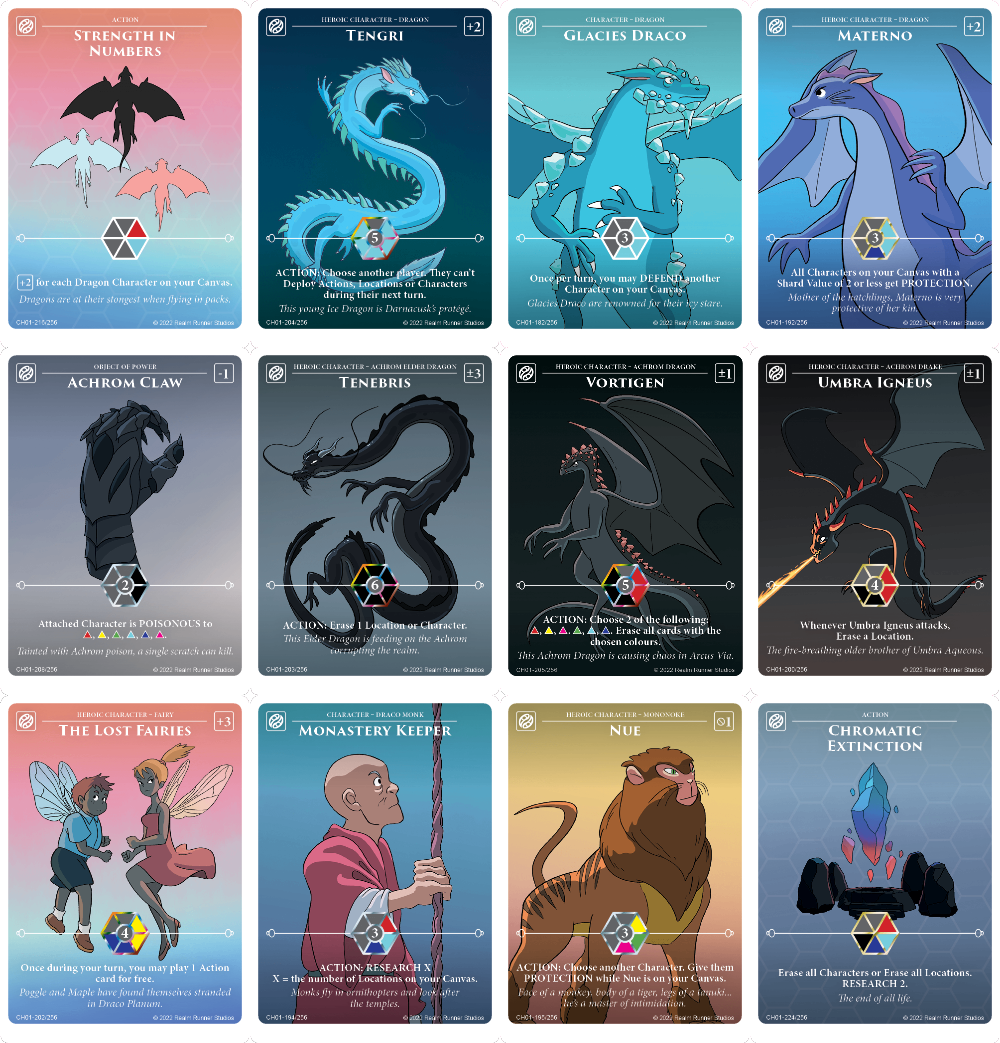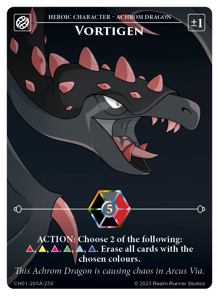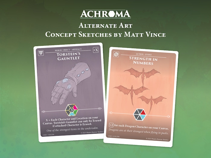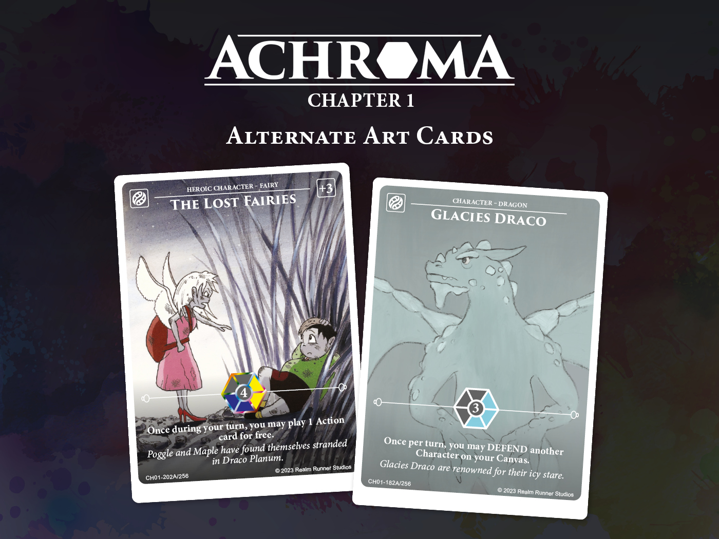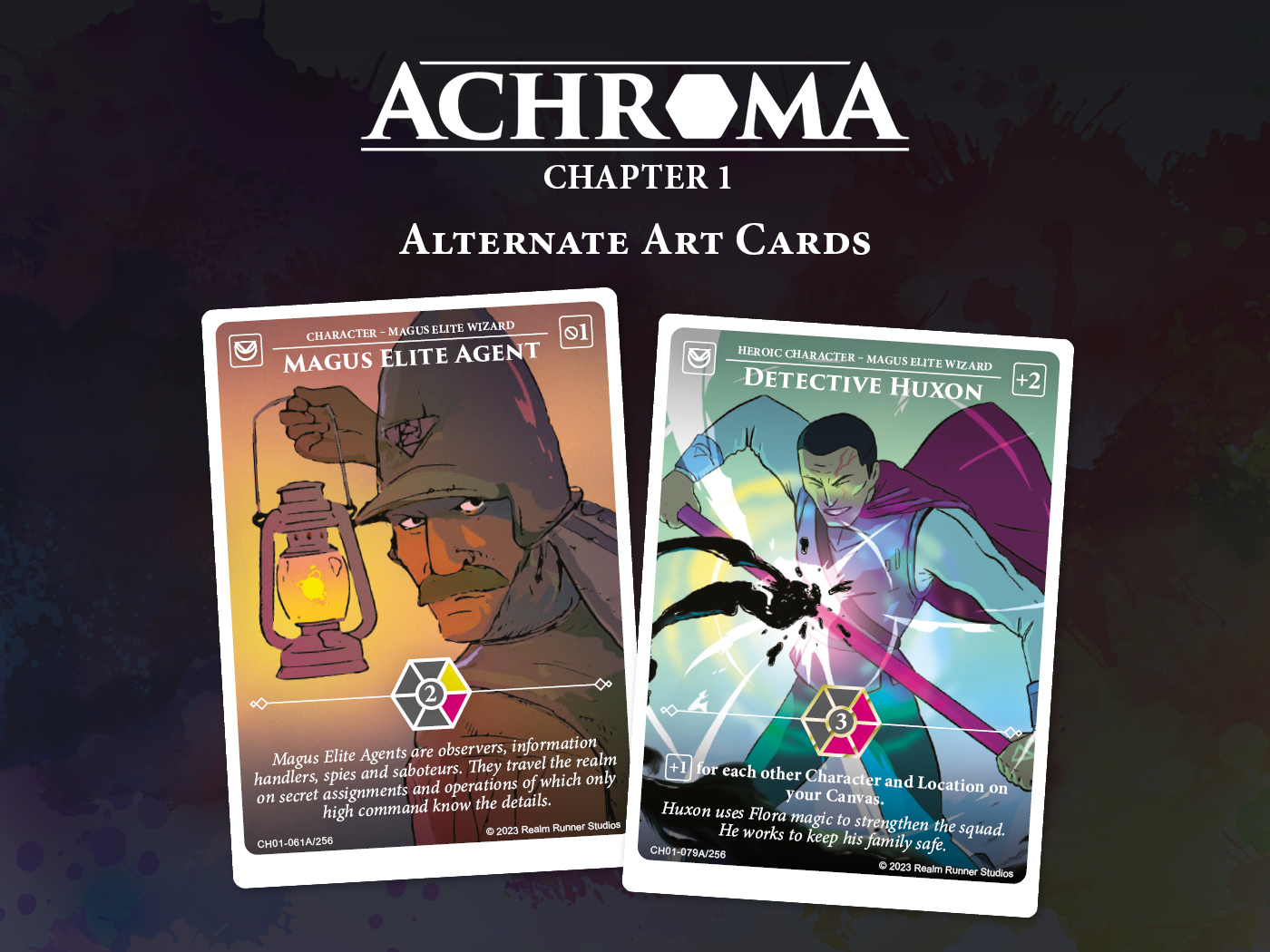 As part of achroma‘s kickstarter campaign, there will be 48 new alternate art cards from Chapter 1. One of the great things about this, other than the fact that they look amazing, is that players can use these cards to double up on legendaries for heroes mode, or just have more decks built at once without having to swap cards around. The list of cards that will have alt arts has been released, and here they are: