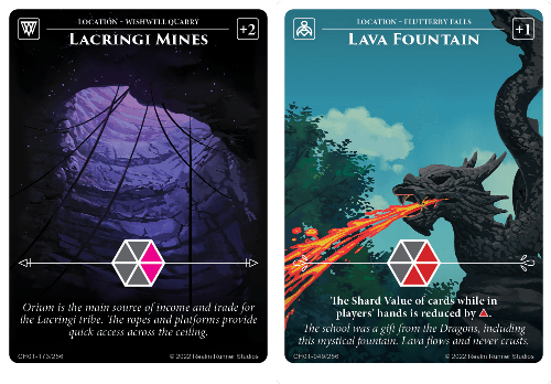 The first is what I like to call “return on investment” or ROI. This is simply how long the card takes to make back the Δ you pay for it. This is most important in games against an achrom deck because the better the ROI the less time you spend costing yourself Δ and the more time you spend gaining back the Δ they are trying to take! As a quick example: Lacringi Mines cost 2Δ but also returns 2Δ back to you on the turn you play it giving it a good ROI as you don’t lose any Δ the turn you play it. A card like Lava Fountain costs 3 and only returns 1Δ per turn, so if you ignore its ability it will take you 3 turns before you start seeing positives from playing it. If you want this card to match the effective ROI of 3/+3 cards like Rangled Wood, you need to be deploying at least 2 cards with red Δ every turn.