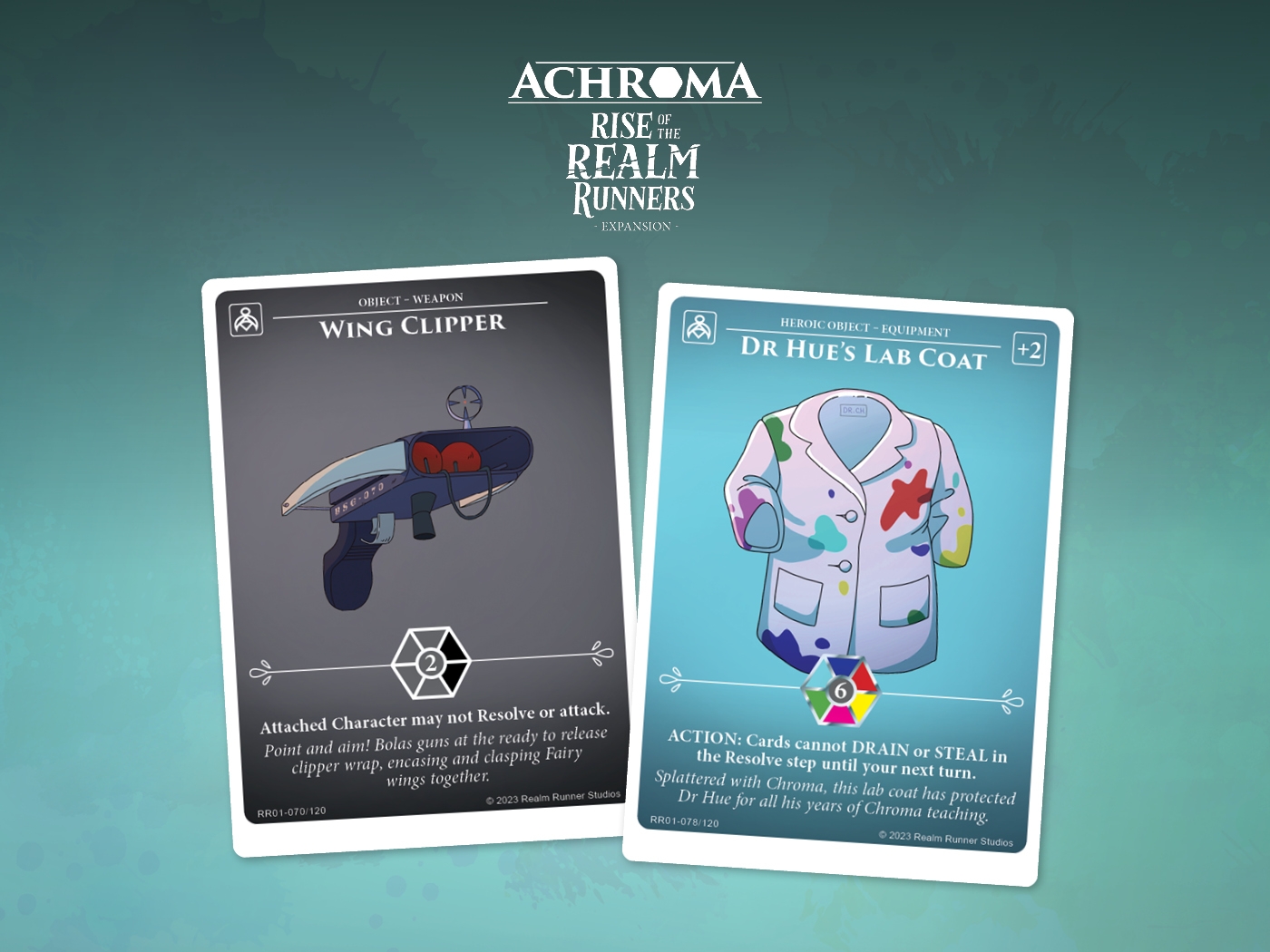 Dr. Hue’s Lab Coat is a sort of anti-King Craven in that it prevents all draining or stealing, except that it only lasts 1 round (bad). However, after you’ve played it, it can’t be undone by erasing the card itself, unlike King Craven (good). This means you can play with impunity, safe in the knowledge your Δ bank is safe at least until the end of your next turn. Also, a 6 strength object is enough to make any character pretty damn scary. However, the thing that makes this card super-playable is it’s an uncommon that costs 6Δ! Spirata Planum is already blessed with expensive uncommons: Advance Scouting Party and Giant Prism are both 5Δ cost cards, which is unique in the world of achroma. To add a 6Δ cost uncommon to the realm means that fairy decks will be able to gain and trade their way to victory much more easily. I can’t wait for the first time I play Advance Scouting Party and draw this as one of my 3 cards. This one will definitely be going in my fairies deck as soon as it arrives.