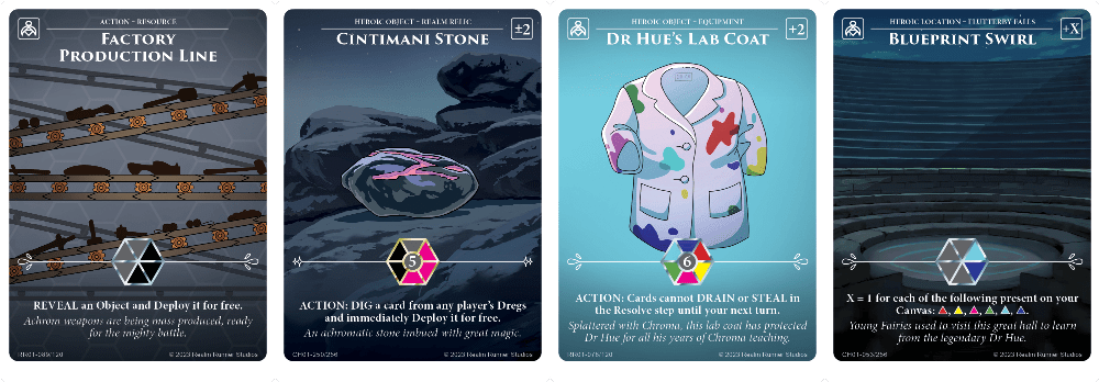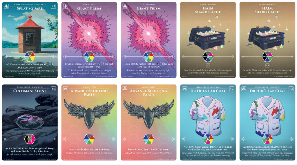 It’s not all about the trading though. The deck contains Cintimani Stone (which offers ludicrous value; maybe play a Full Palette for free?) And double Dr Hue’s Lab Coat. There was not a lot of love for the latter, but for me it represents: the opportunity to play with impunity for a turn, as you cannot be drained; a 6 shard card to trade; a 6 strength object to turn an Imp into a killing machine; and 6 shard colours to push the value of Blueprint Swirl through the roof.