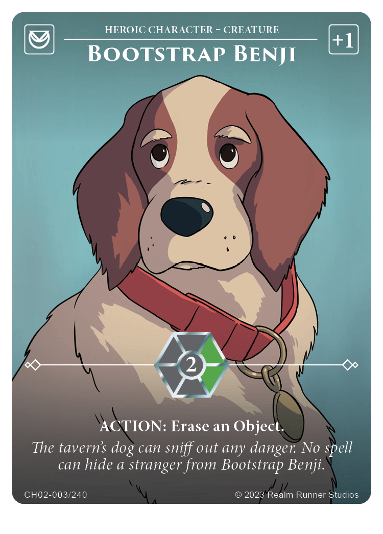 The cat and dog from the Veil Chaser, both characters represent some cheap and useful tech. Bootstrap Benji has built in object disposal, like a weak Carmella, which can be very useful. Veil Chaser’s Cat is a simple +1 for 1Δ that gives you a bit of DIVERT protection for a turn, which is handy. Two solid fuzzballs. And they’re both cute.