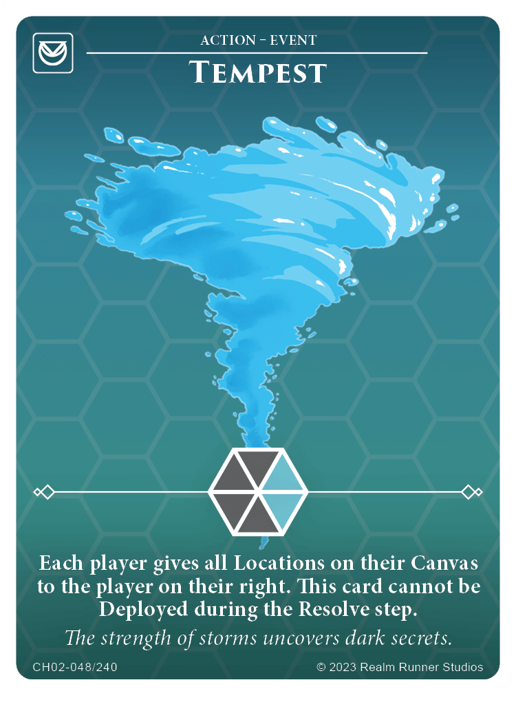 I’ve been previously critical of the imbalance between actions that REVEAL cards and just add them to your hands vs those that play them for free. The Veil Chaser’s Nest strikes the perfect balance to me: it costs you essentially 1Δ to play as it has a +1 resolve, and replaces itself in your hand. If it persists on your canvas next turn it will have cost nothing from hand or Δ bank, and will help you find key locations. A solid card in the right deck. More like this please.