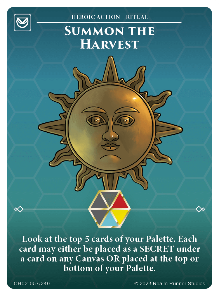 A bit high risk, but Summon the Harvest card is absolutely a win condition card. Playing 5 cards for free in a turn you can still play 3 more cards is crazy. It doesn’t go off very often, especially in multi-player, but when it does, it’ll often win you the game. Even if it forces the opponent to deal with your character or location holding the secrets, that at least slows them down a bit.