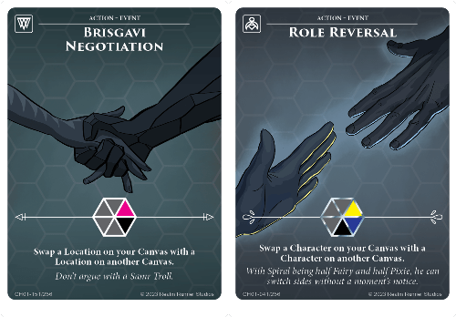 Play Brisgavi Negotiation or Role Reversal after resolving the location or character you’re giving away. Even if you’re giving the opponent a lowly Trainee Painter, get the +1 from it before you give it away, then resolve the character or location you’ve just stolen.