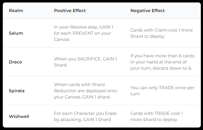 Tonight, Achroma made a huge announcement. The full announcement is on their website, but here’s the summary: when you’re playing a game of Achroma, there will be positive and negative effects which will affect you based on the Realm you choose to play. These modifiers are in effect immediately, and will be enforced during tournaments. For reference, here are the modifiers: