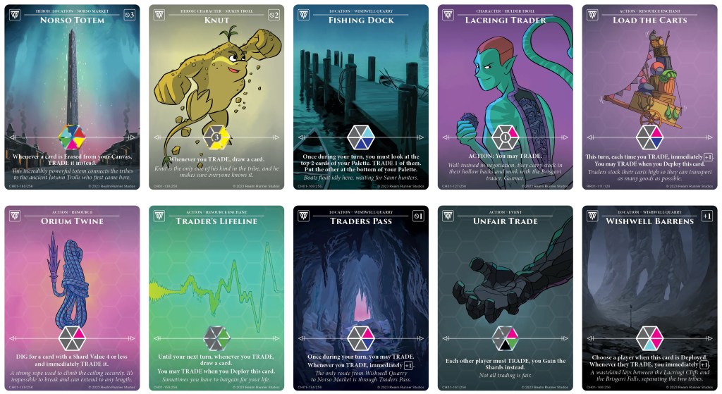 The negative modifier is that cards with TRADE cost 1 more shard to deploy. This I did not expect. Hitting Traders isn’t the surprise, but the size of this hit shocked me. It’s true that this was the other palette that could regularly sneak a turn 2 chroma win, taking a Top 4 at Patriot Games on Sunday, but probably cannot now. The main cards hit be this modifier are as follows: