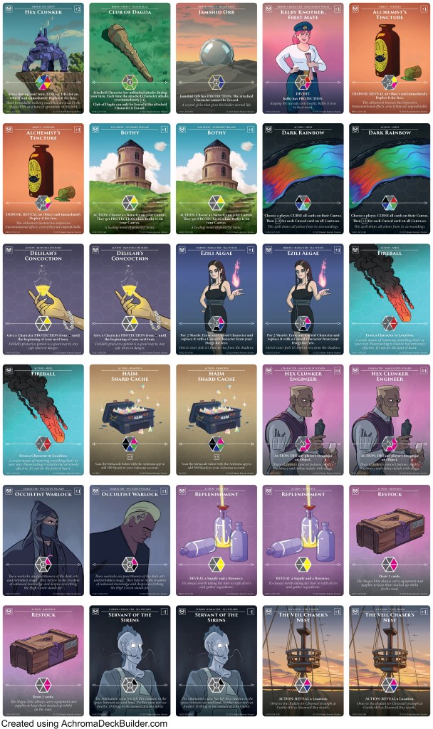 This by no means is a competitive deck. I’ve tested it. It runs too low on shards against achrom, and the set up is too slow against fast chroma decks. But in longer multiplayer games, or casual play 1v1s, it’ll have a decent shot. Irrespective of the power of this deck, I find it slightly surprising that the Achroma team are happy that there’s an infinite loop in the game, but so long as it remains hard to set up it won’t be a problem for competitive play.