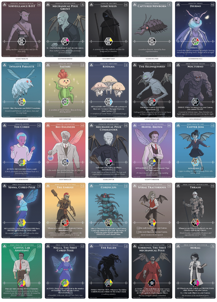 Mechanical Pixie Grunt has the potential to drain a lot thanks to the 7 mechanical cards in the set. The neutral faction in this set, The Forgotten, have a distinctly achrom flavour, being headed up by the “walking calamity” that is The Fallen, and backed up by The Relinquished, who on his own is a reason to play parasites. Nocturno looks like an attempt to block Rayders, even if it is going to be fairly easy to remove, as you can just send the attached character on a suicide mission against one of your characters. This will only stay on the canvas if you don’t play any decent characters.