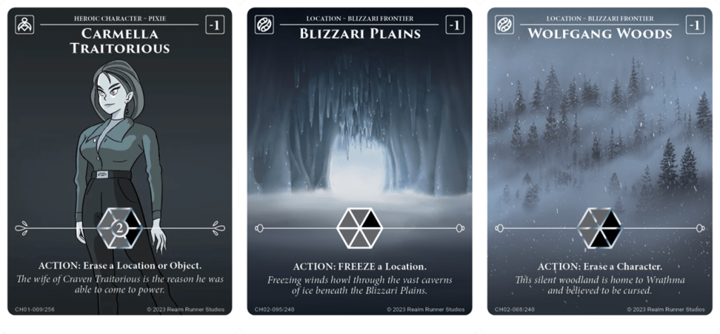 It had been previously ruled that if you played Carmella Traitorious when you’re the only player with a Location or Object, you could choose not to resolve her ACTION. But no longer. Similarly, you better not play Blizzari Plains unless your opponent has a location out, or you’re going to end up freezing it, or another location you control.