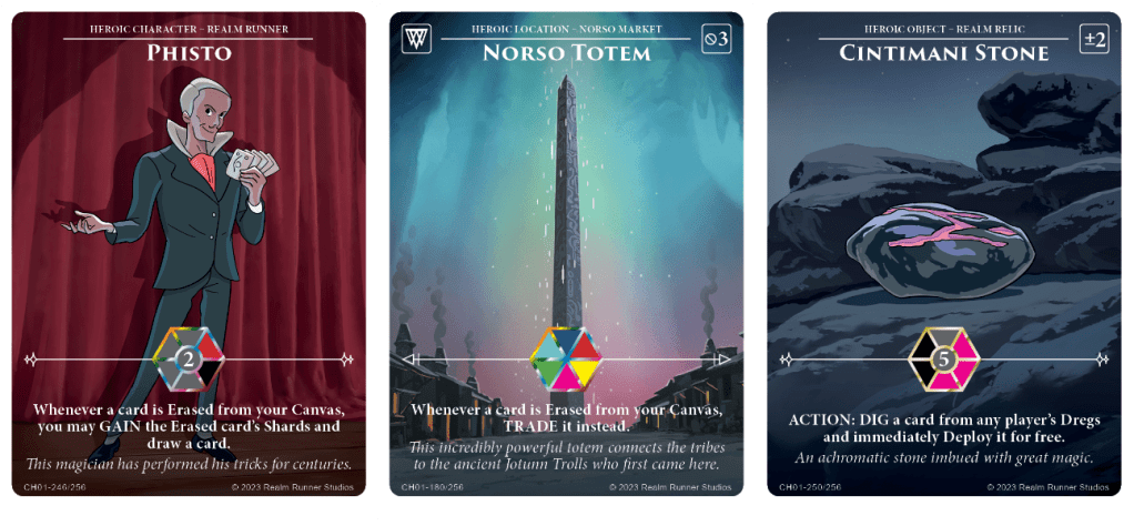 The idea here is that if the opponent has a Cintimani Stone in their dregs, you can play Stone on one of your characters, and use its ACTION to play their Stone from their dregs on one of your characters. Thanks to the change to the heroic rule from Achroma 2.0, the first Stone is erased and then the action on Stone triggers, allowing you to play the first Stone again. Combine this with an ability that triggers when one of your cards is erased, such as The Unruly, Phisto, or Norso Totem, and you’ve got yourself an autowin.