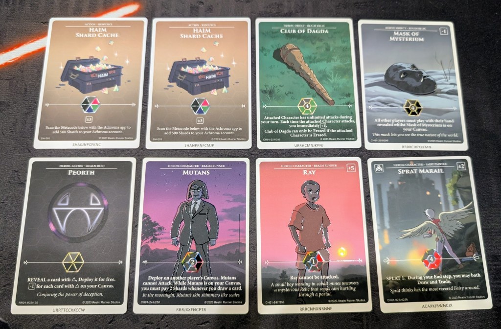 I enjoyed this fresh new way of playing Achroma. However, I do feel like the object:character balance is off, meaning an “objects direct to canvas” rule is essential for play to function. Also, the relatively low power level of cards from boosters means that I believe a draft support pack (either homemade, or preferably Achroma produced) would be an excellent way to support this product for future tournament use.