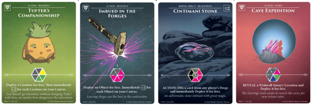 One thing I’ve noticed about The Hydra (and The Minotaur) is that they’re creatures. This means that they can be paired with an underplayed card from Rise of the Realm Runners, Tufter’s Companionship. This Action essentially means you can play a creature for 1Δ, or you actually net shards if you already have 1 or more on your Canvas. If all the Monsters of Norso are also creatures, this could be a very strong card.